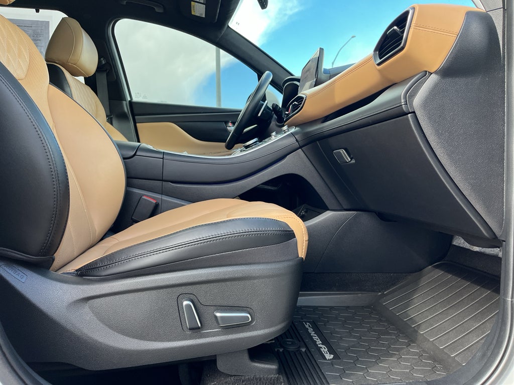 This vehicle is equipped with all wheel drive. This mid-size suv offers Android Auto for seamless smartphone integration. Apple CarPlay: Seamless smartphone integration for this mid-size suv - stay connected and entertained on the go! This mid-size suv keeps you comfortable with Auto Climate. See what's behind you with the back up camera on it. Our dealership has already run the CARFAX report and it is clean. A clean CARFAX is a great asset for resale value in the future. Maintaining a stable interior temperature in this Hyundai Santa Fe is easy with the climate control system. Easily set your speed in this mid-size suv with a state of the art cruise control system. Increase or decrease velocity with the touch of a button. The Electronic Stability Control will keep you on your intended path. This Hyundai Santa Fe has a 4 Cyl, 2.5L high output engine. This Hyundai Santa Fe is equipped with a gasoline engine. This 2023 Hyundai Santa Fe features a hands-free Bluetooth® phone system. This unit is pure luxury with a heated steering wheel. Quickly unlock this unit with keyless entry. Lane Keep Assist in this 2023 Hyundai Santa Fe helps maintain safe driving by gently steering to stay within the lane. The leather seats in it are a must for buyers looking for comfort, durability, and style. With the adjustable lumbar support in this vehicle your back will love you. This mid-sized SUV is perfect for your next adventure. You'll never again be lost in a crowded city or a country region with the navigation system on this unit. Load groceries and much more with ease into this vehicle thanks to the power liftgate. Never get into a cold vehicle again with the remote start feature on this mid-size suv. This mid-size suv shines with clean polished lines coated with an elegant white finish.